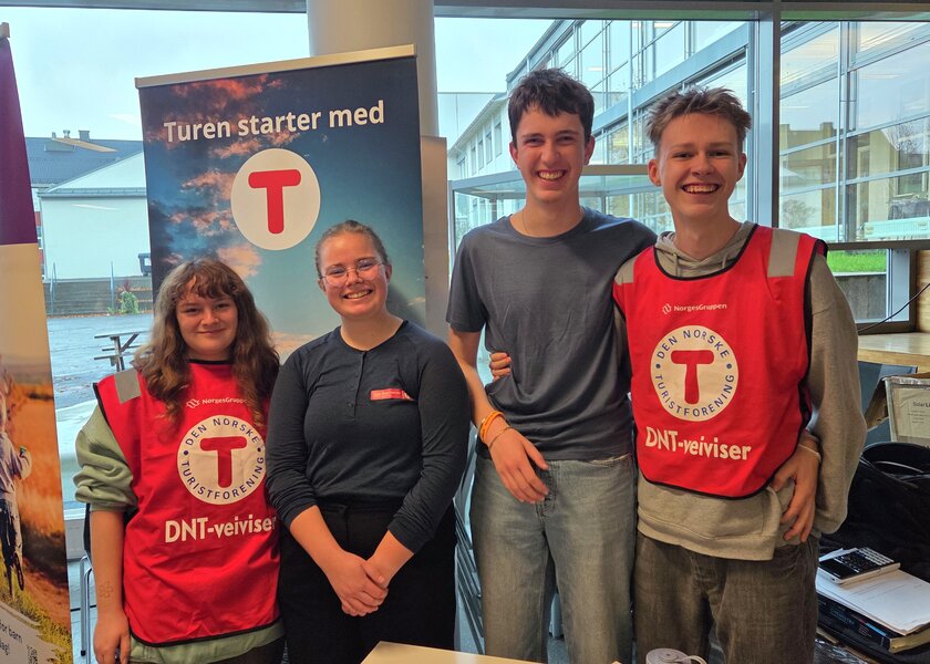 Selma, Iben Louise, Timéo-Johannes og Amund Olai, reklamerte for DNT Gjøvik og omegn.